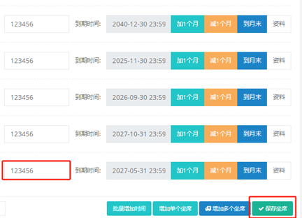 保存好企业后,开通坐席,坐席到月末(根据天算结算坐席费用),可以修改标红坐席密码,保存坐席,如下图标红