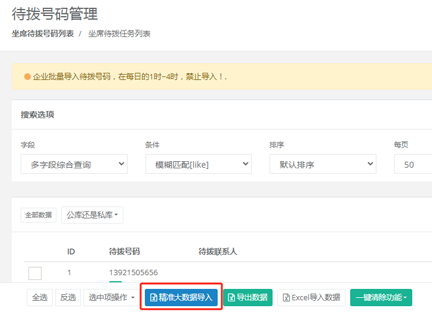 大数据待拨号码分配:待拨号码管理-右中-待拨号码分配(可把企业公库号码平均分配到每个坐席,也可以回收到公库里)注:只有分配到坐席里的号码,app才支持(自动拨打)话单;