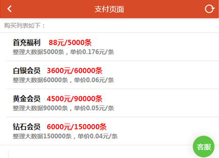 大数据会员购买:大数据会员分为4个登记:充值福利,白银会员,黄金会员,钻石会员;如下图标红