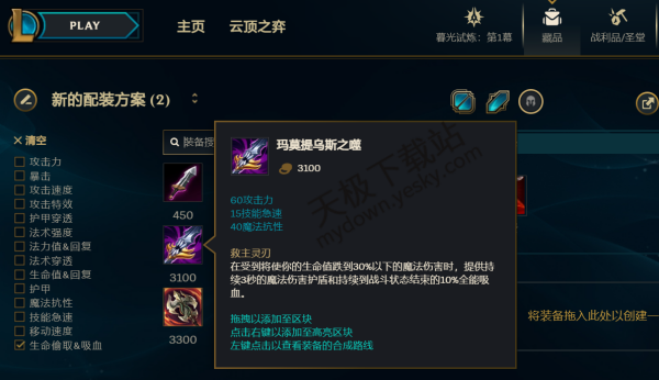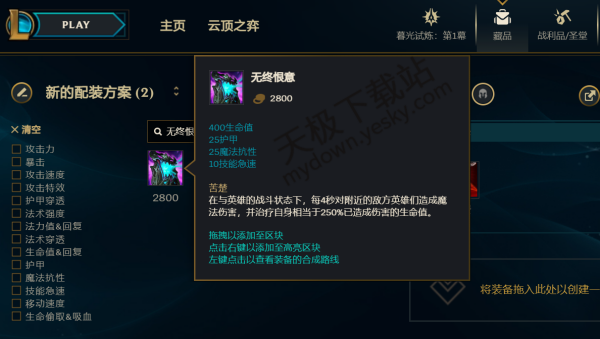 ●效果:提供15点攻击力,35魔抗、10%生命偷取