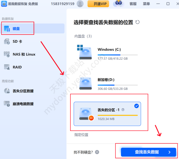 易我数据恢复可以恢复磁盘的数据,具体操作如下: