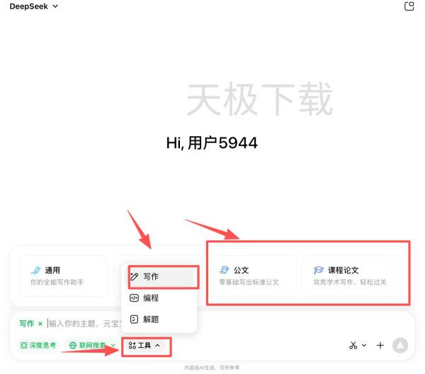 腾讯元宝除了自我介绍之外,还支持公关文、工作周报日报、写作稿、发言稿等多种形式的写作,用户打开腾讯元宝,点击【工具】,选择【写作】,即可选择相关内容进行生成。