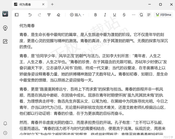 2.AI写作:支持生成多种类型的文本内容,包括营销文案、工作报告、学术提纲、创意故事等,可根据用户设定的风格和字数要求快速产出文案。