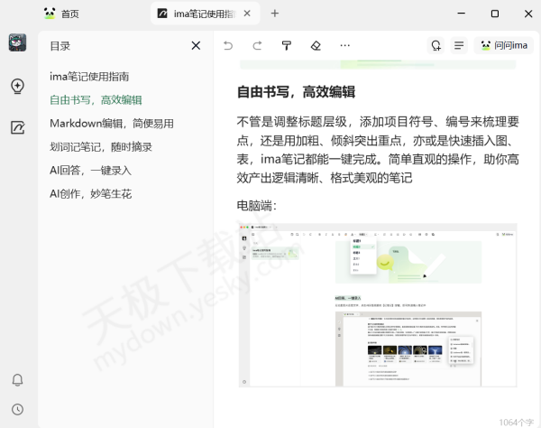 腾讯ima是腾讯公司依托自身AI技术实力开发的智能助手工具,它整合了多种AI功能,比如AI问答、AI写作、AI图像生成等,能够通过智能化手段提升用户的信息处理与内容创作效率。无论是日常的信息查询、文案撰写,还是专业的文档解读、知识管理,用户都能通过腾讯ima快速完成,无需切换多个工具,是一款覆盖工作、学习等多场景的实用型AI辅助工具。