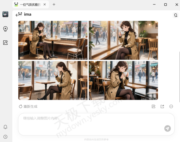 4.AI图像生成:根据我们输入的文字描述,生成插画、海报、场景图等不同风格的图像,支持调整画面元素、风格基调,满足创意设计与视觉表达需求。