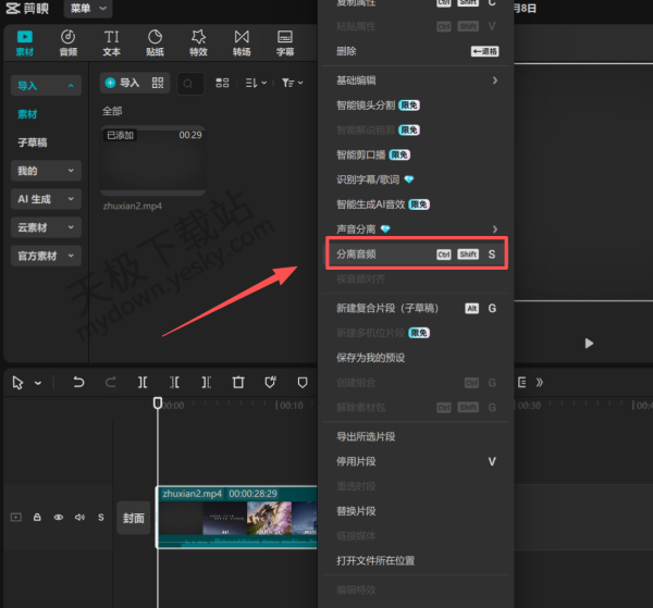 4.如图,在下方的轨道处会分离出视频的音频轨道。