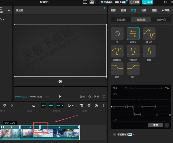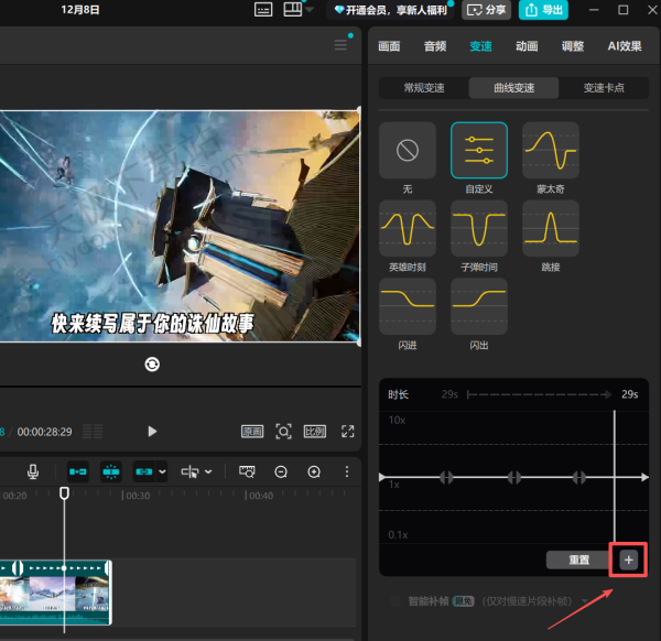 ●在变速面板选择【自定义变速】,下方会出现自定义变速面板。