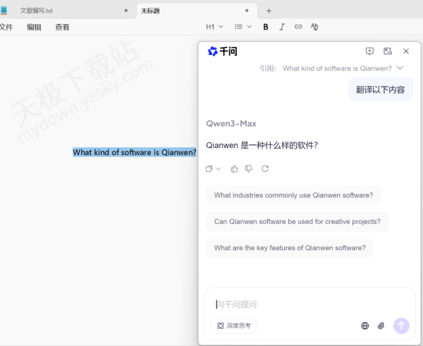 经实测,千问划词工具栏还是比较好用的,它拥有AI搜索和AI翻译工具,无需打开千问主程序,只需用鼠标选中目标文本,就能触发工具。无论是查阅陌生知识点、解析专业术语,还是翻译外文片段,都能快速得到精准结果,大幅节省切换软件、输入关键词的时间。